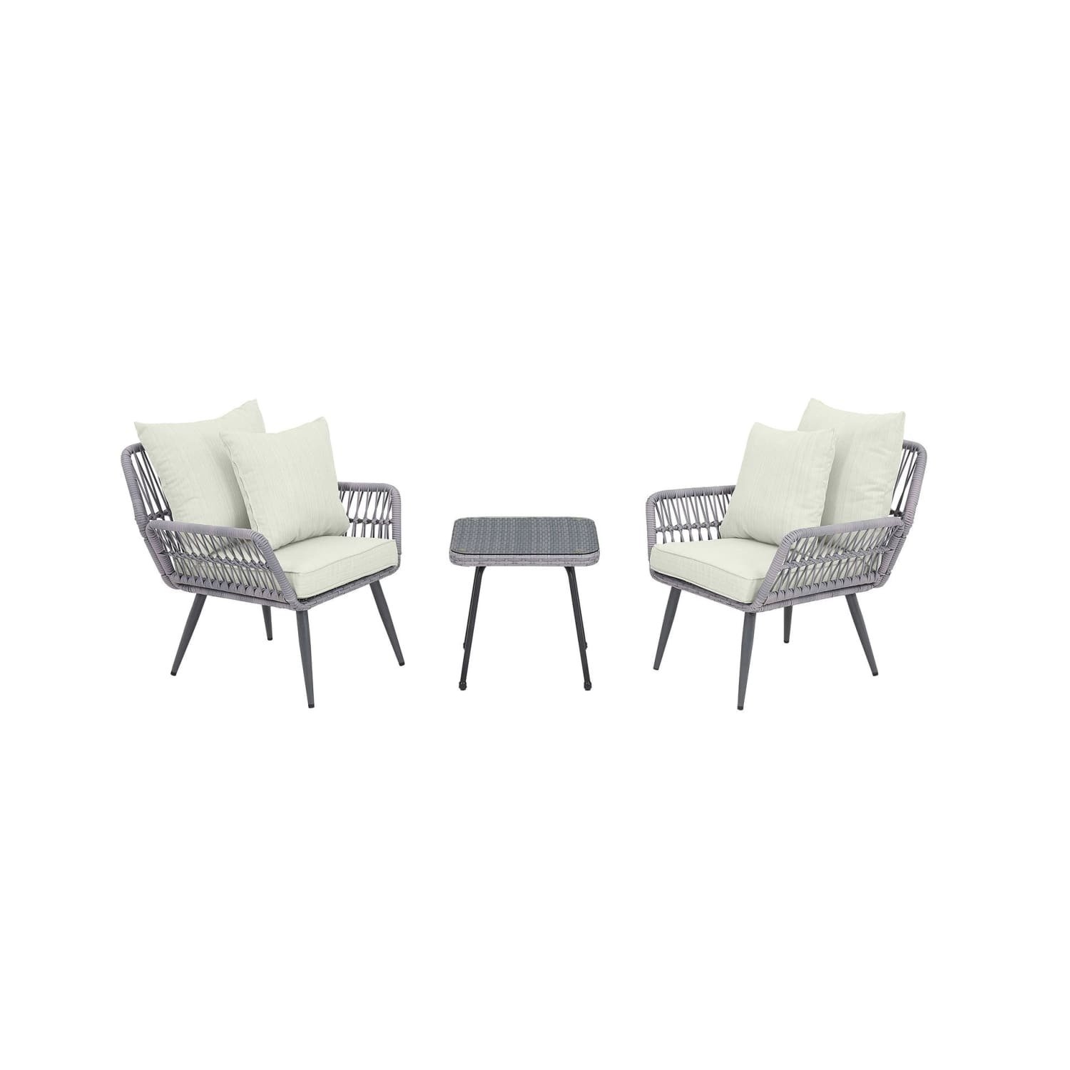 Manhattan Comfort Cannes Rope Wicker 3-Piece Patio Conversation Set with Cushions in Cream