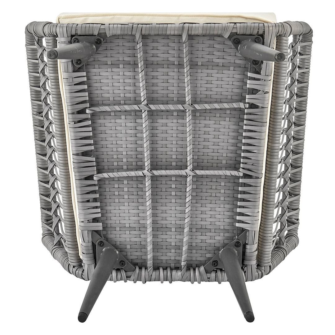 Crafted from durable rattan and strong iron; this two-person lounger set showcases style that's long-lasting in every way. Chic and comfortable; with removable cushions (that are also washable); this set is inviting and outdoor-friendly. A compact end table holds a glass of wine or a cup of coffee; so you can lounge poolside; by the firepit; or take time to enjoy nature. Create your perfect corner or coziest alcove for a space that's all your own. Modern 3-Piece Outdoor Patio Set with 2 Armchairs and 1 End Table. Chair Dimension Measures: 26.77" Length; 27.95" Depth; 29.53" Height.End Table Measures: 18.50" Length; 18.50" Depth; 17.72" Height. Removeable Cushions with Zipper. Made of High Quality Water Proof Fabric. Washable Fabric.End Table Includes 5MM Removeable Tempered Glass Top. Unique Table Top Rounded Edges .Frame Made of Steel Wrapped in PVC Rattan Perfect for Outdoor Weather. Home Assembly Required. All Hardware Included