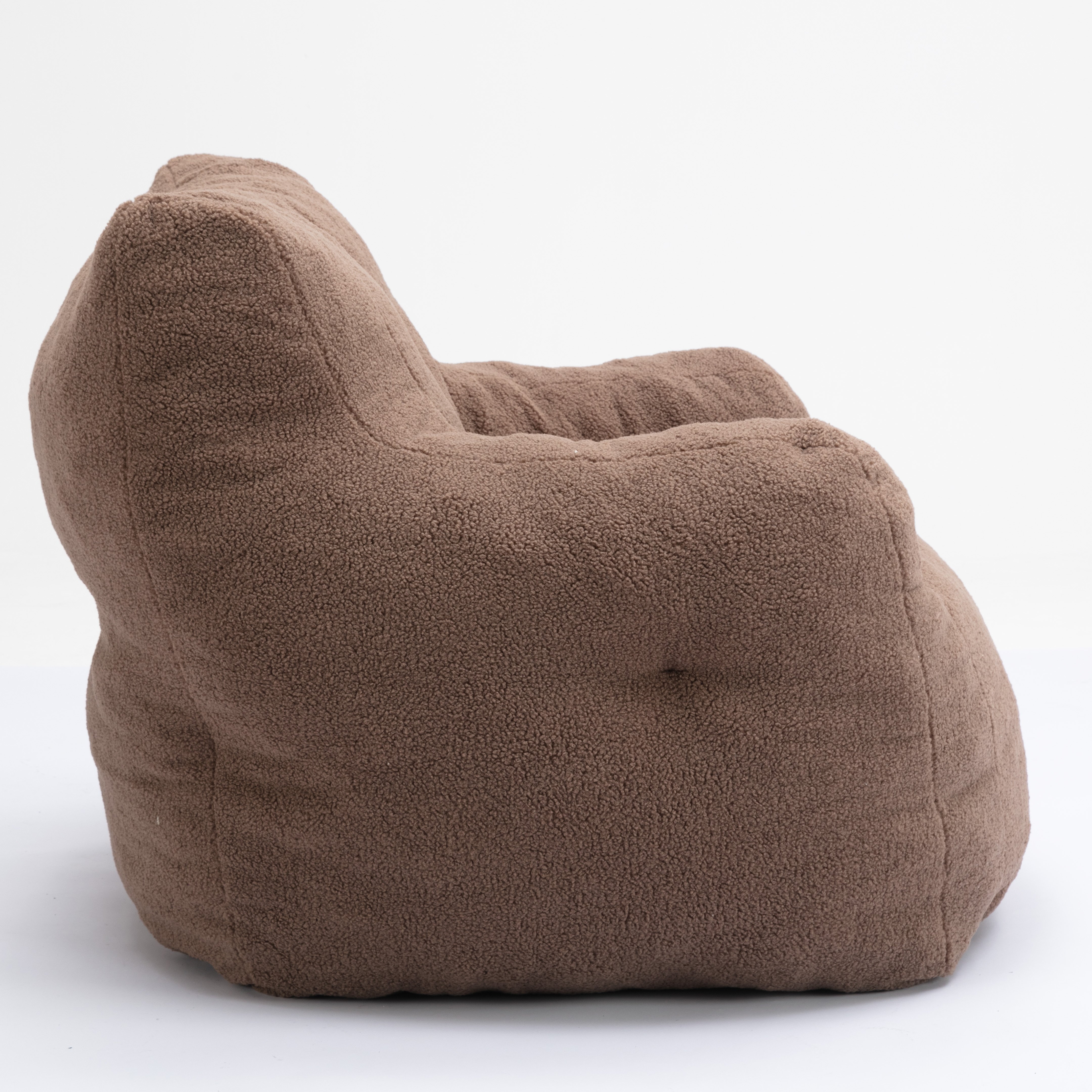 Soft Tufted Foam Bean Bag Chair With Teddy Fabric Coffee Brown